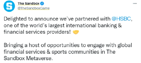 汇丰银行宣布入驻元宇宙平台The Sandbox